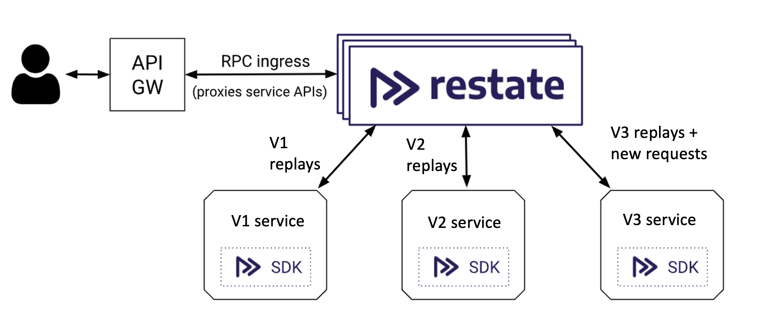 Restate ‘workflows’ are much more like normal code than they are like workflows; they appear like RPC handlers. There are no event consumers; the runtime always makes outbound requests to your services, which can run as long-lived containers, or as Lambda functions. You just need to register an HTTP or Lambda endpoint with Restate, which will figure out what services run there, create a new version for those services, and start using that version for new requests.